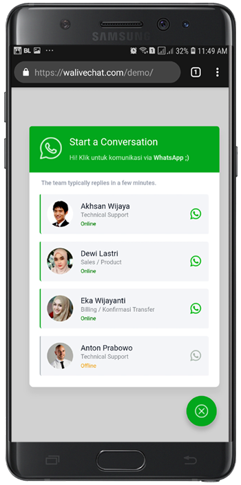 WA Livechat adalah widget dengan style ala "Live Chat" yang bisa dipasang di Website Anda, dan menjadikan "Calon Pembeli / Mitra" Anda bisa terhubung langsung ke Whatsapp Anda secara Mudah.
