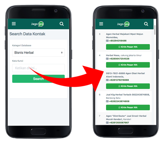 Kini, dengan JagoWA App Anda akan "mudah" mendapatkannya. Hanya dengan ketik "Kata Kunci" yang Anda inginkan, dalam hitungan detik.. Booom! "Data Kontak" Anda dapatkan!