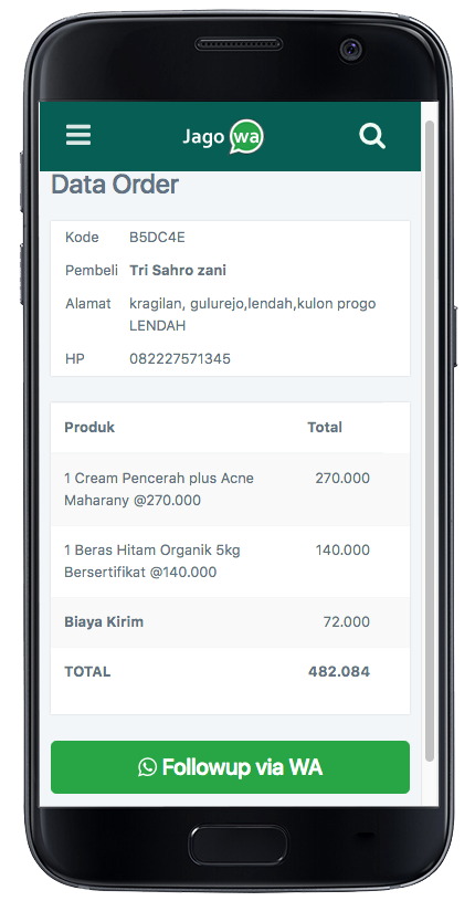 Almhadulillah, order tadi pagi.. Selang 1 jam langsung bisa menikmati fasilitas dari JagoWa dan Web Toko Online gratisnya. Semoga semakin laris dan sukses selalu!